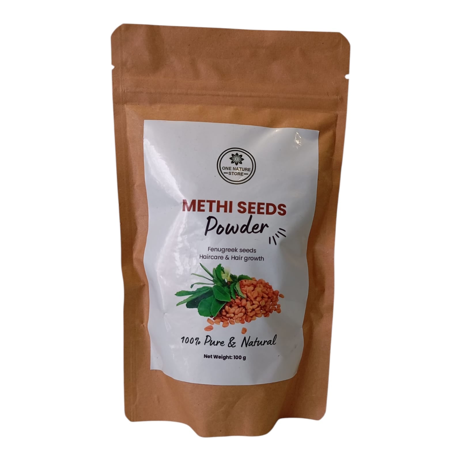 One Nature Stores - Methi Seeds Powder is the Ayurvedic Secret for Strong, Lustrous Hair! Unlock the magic of 100% pure Methi (Fenugreek) Seeds Powder, a powerhouse of nutrients that deeply nourishes your hair and scalp. Rich in proteins, iron, vitamin C, and nicotinic acid, Methi strengthens hair follicles, controls hair fall, and promotes thick, healthy locks. Say hello to stronger, shinier, and dandruff-free hair—naturally!